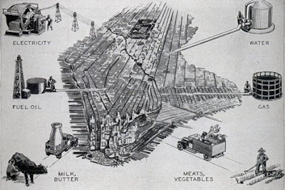 The trend towards better development and ecological planning seems more recent but has many historical precedents. The perils of urban dwelling have long been predicted, and one that has plagued (or mesmerized) urbanists for decades. A 1932 article from Modern Mechanix, featured on Treehugger concludes that cities and: "... the infrastructure of gas, water and fuel is too complex, and that cities will become increasingly unhealthy."