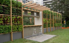 Finally, let's marry a couple of buzz-concepts - urban agriculture and vertical greening. A different scale than some of the featured rooftop ag gardens, this project preceded a multi-part post on My Urban Garden Deco Guide and the companion site 'My Urban Farm' as blogger Anne Robert bemoans the lack of aesthetics in the new wave of planters focussed around Grow Your Own veggies as new urban trend. One exception is a previous post on 'Salad Bar' which provides a new vision for facade-grown veggies in a more refined container.