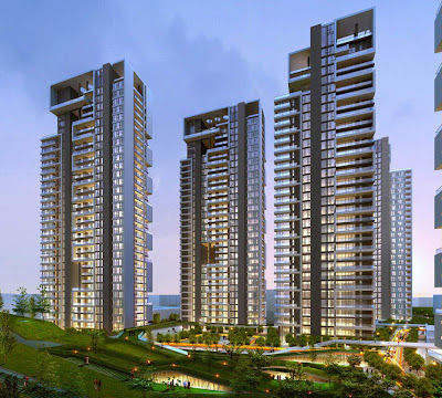 From WAN: "The neighborhood's redevelopment plan includes new high-rise residential construction that will emphasize a higher quality of life through the integration of public green spaces and parklands... The ample green space was achieved by submerging two garage levels below the main park that begins at grade at the west end of the site. Ribbons of green space undulate across the site, admitting light, access and ventilation to the parking below. The green ribbons rise to form a green roof over the three pavilions that form the community center at the eastern end of the site... Various grass textures accentuate the patterns formed by the folds in the park. A variety of paths provide access through the site, emphasizing the pedestrian network at grade."