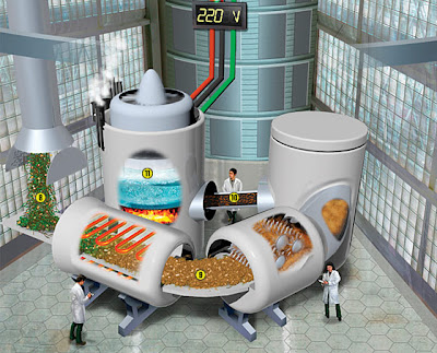 Aside from the massing and program elements - there are ample opportunities for high tech innovation as well in the vertical farm - including power generation and on-site sewage treament. Some detail on this system: